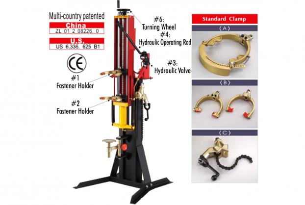 5.) After dismantling and changing the shock absorber. To slowly release #3 hydraulic valve, then #2 fastener holder will lower to original position.